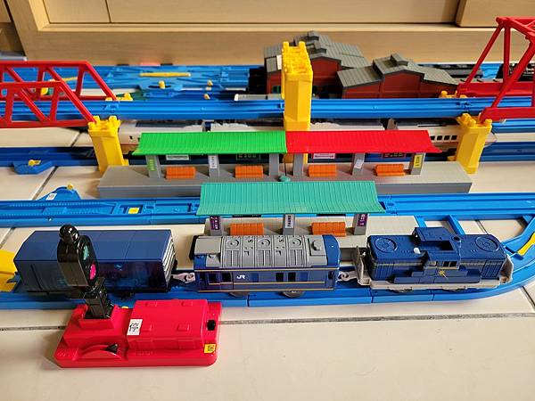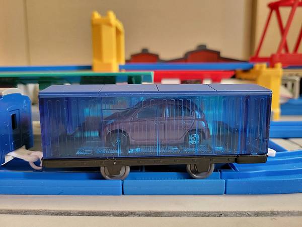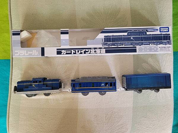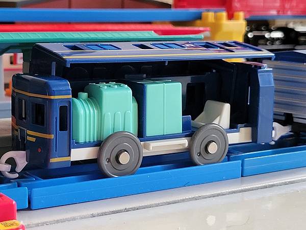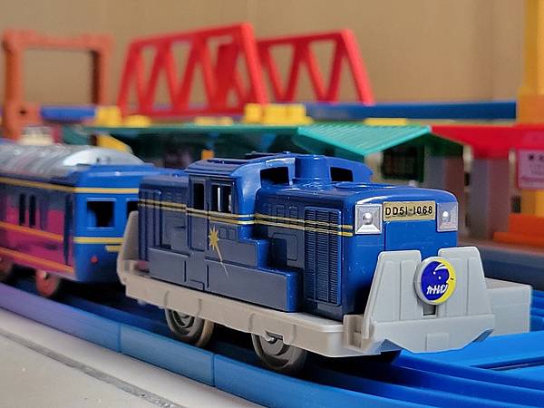 Plarail DD51北海道載運列車組,車頭使用2號電池一顆,一節有座位的車廂(可放Plakids人偶一個),和一節汽車載運車。