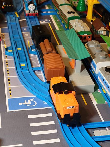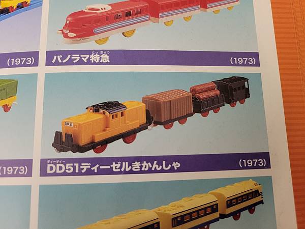(照片是 Tomy 在 1973年發售的 Plarail DD51 貨車套組,此車為日本製,電源開關在車頭下方而不是在上方,與現行的Plarail開關位置不同)