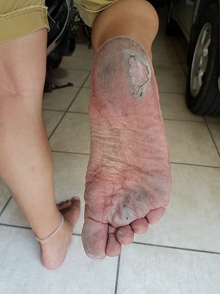 水泡乾燥後的痕跡(腳底白白的部份)