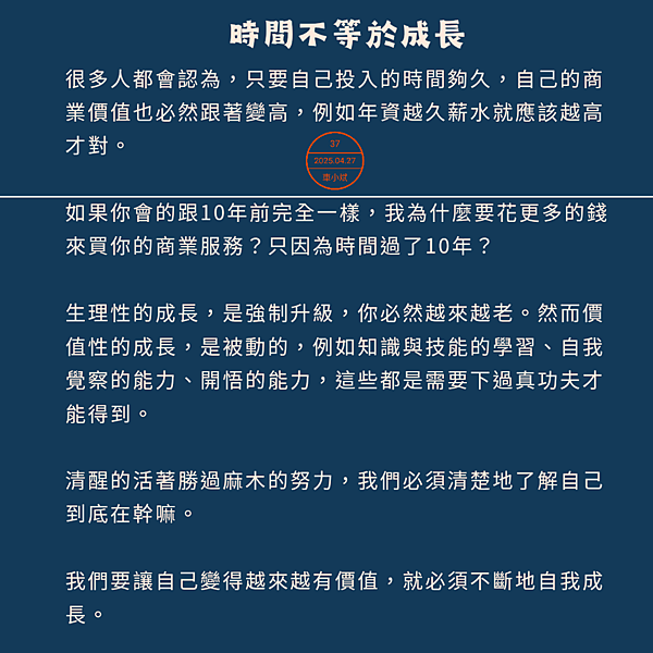 如果你會的跟10年前完全一樣,我為什麼要花更多的錢來買你的商業服務?只因為時間過了10年?