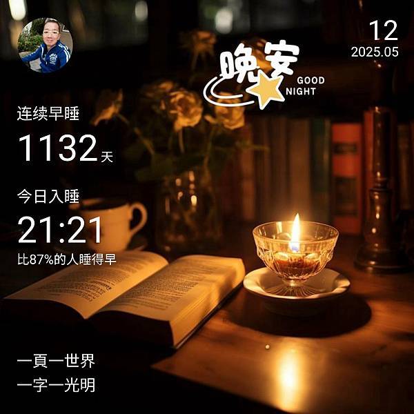⬆️晚安打卡圖 2025.05.12 一頁一世界,一字一光明