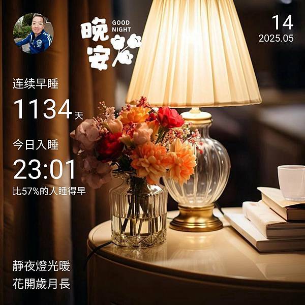 晚安打卡圖 2025.05.14 靜夜燈光暖,花開歲月長。