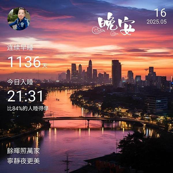 ⬆️晚安打卡圖 2025.05.16 餘暉照映萬家,寧靜夜更美。