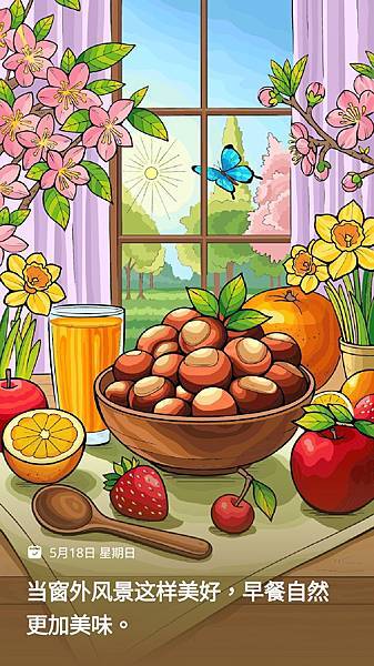 2025年5月18日 星期日,當窗外美景這樣美好,早餐自然更加美味。