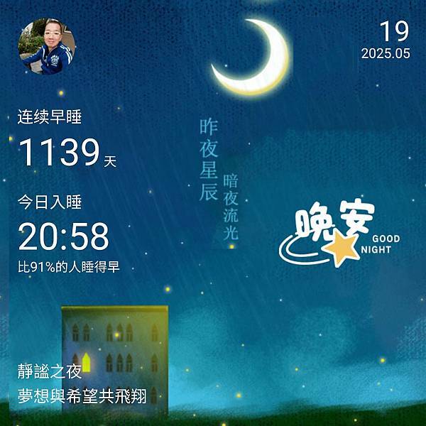 ⬆️晚安打卡圖 靜謐之夜,夢想與希望共飛翔,2025.05.19