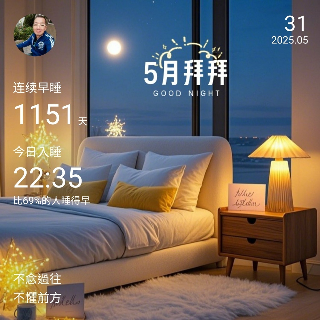⬆️晚安打卡圖,2025.05.31,五月再見,不念過往,不懼前方。