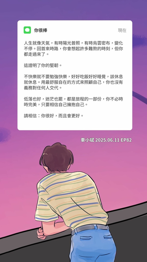 低落也好,迷茫也罷,都是旅程的一部份,你不必時時完美,只要相信自己擁抱自己。