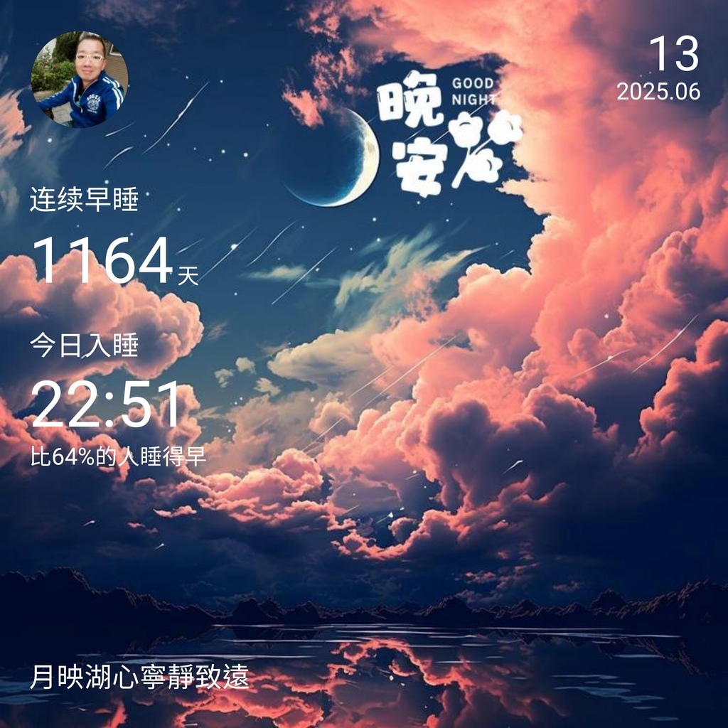 晚安打卡圖,2025.06.13,月映湖心寧靜致遠