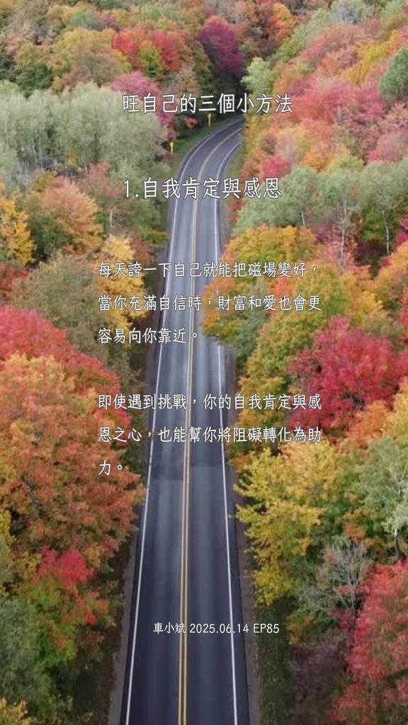 每天誇一下自己就能把磁場變好,當你充滿自信時,財富和愛也會更容易向你靠近。即使遇到挑戰,你的自我肯定與感恩之心,也能幫你將阻礙轉化為助力。