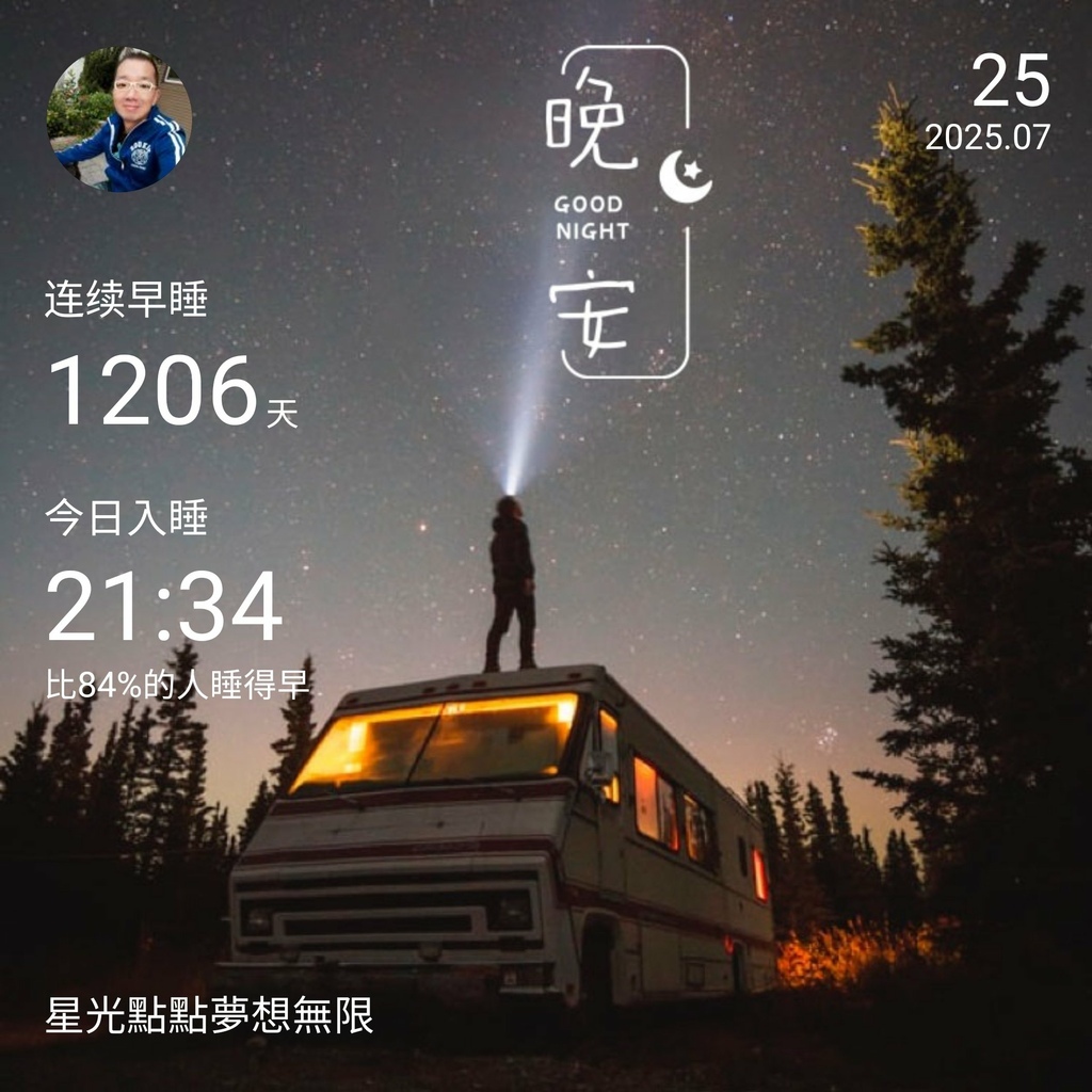 ⬇️晚安打卡圖,2025.07.25,星光點點夢想無限