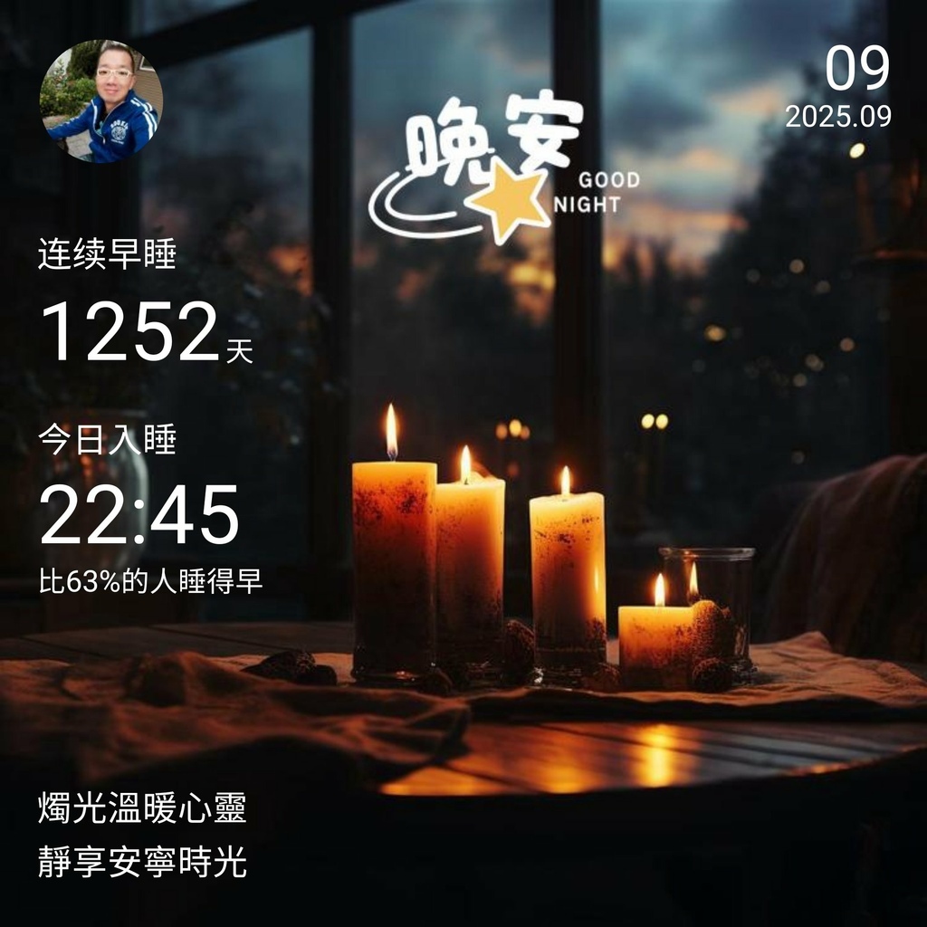 ⬆️晚安打卡圖,2025.09.09,燭光溫暖心靈,靜享安寧時光