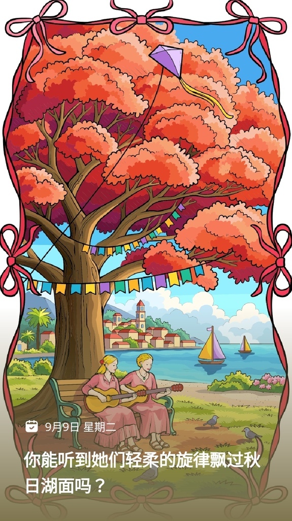 數字填色,2025.09.09,你能聽到他們輕柔的旋律飄過秋日湖面嗎?