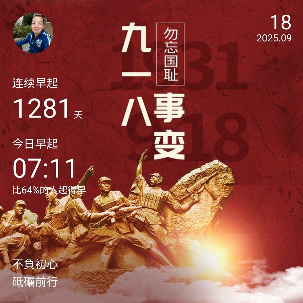 ⬆️早安打卡圖,2025.09.18,不負初心砥礪前行