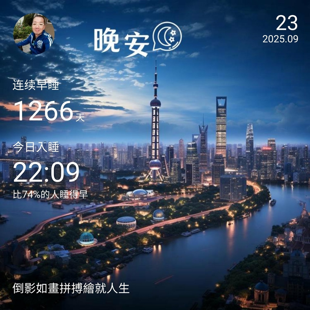 ⬆️晚安打卡圖,2025.09.23,倒影如畫拚搏繪就人生