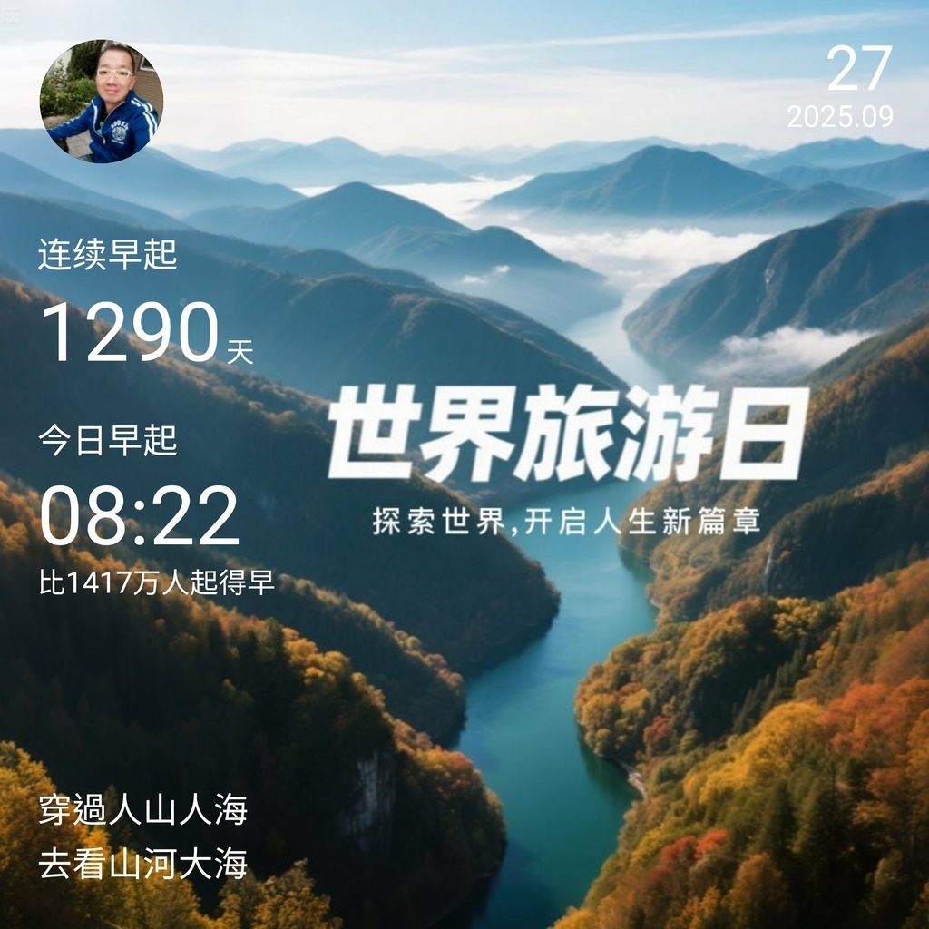 ⬆️早安打卡圖,2025.09.27,穿過人山人海,去看山河大海