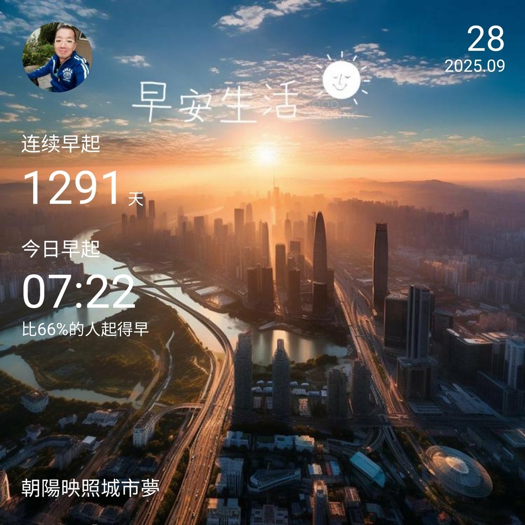 ⬆️早安打卡圖,2025.09.28,朝陽映照城市夢