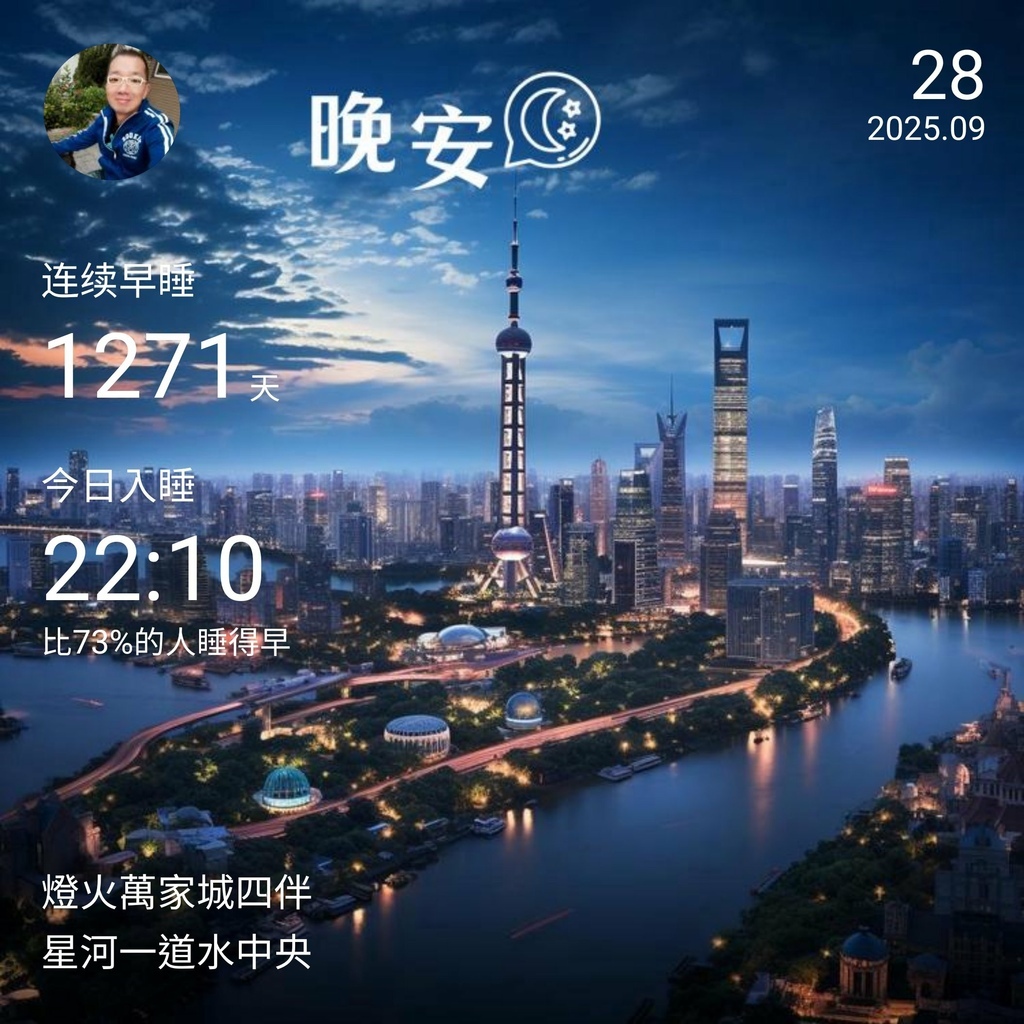 ⬆️晚安打卡圖,2025.09.28,燈火萬家城四伴,星河一道水中央