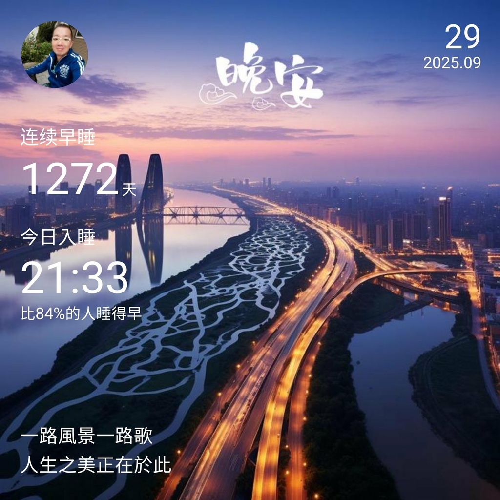 ⬆️晚安打卡圖,2025.09.29,一路風景一路歌,人生之美正在於此