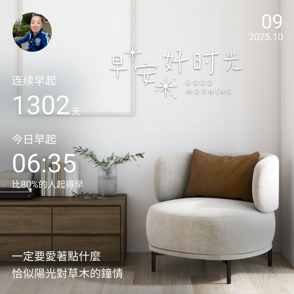 ⬆️早安打卡圖,2025.10.09,一定要愛著點什麼,恰似陽光對草木的鍾情