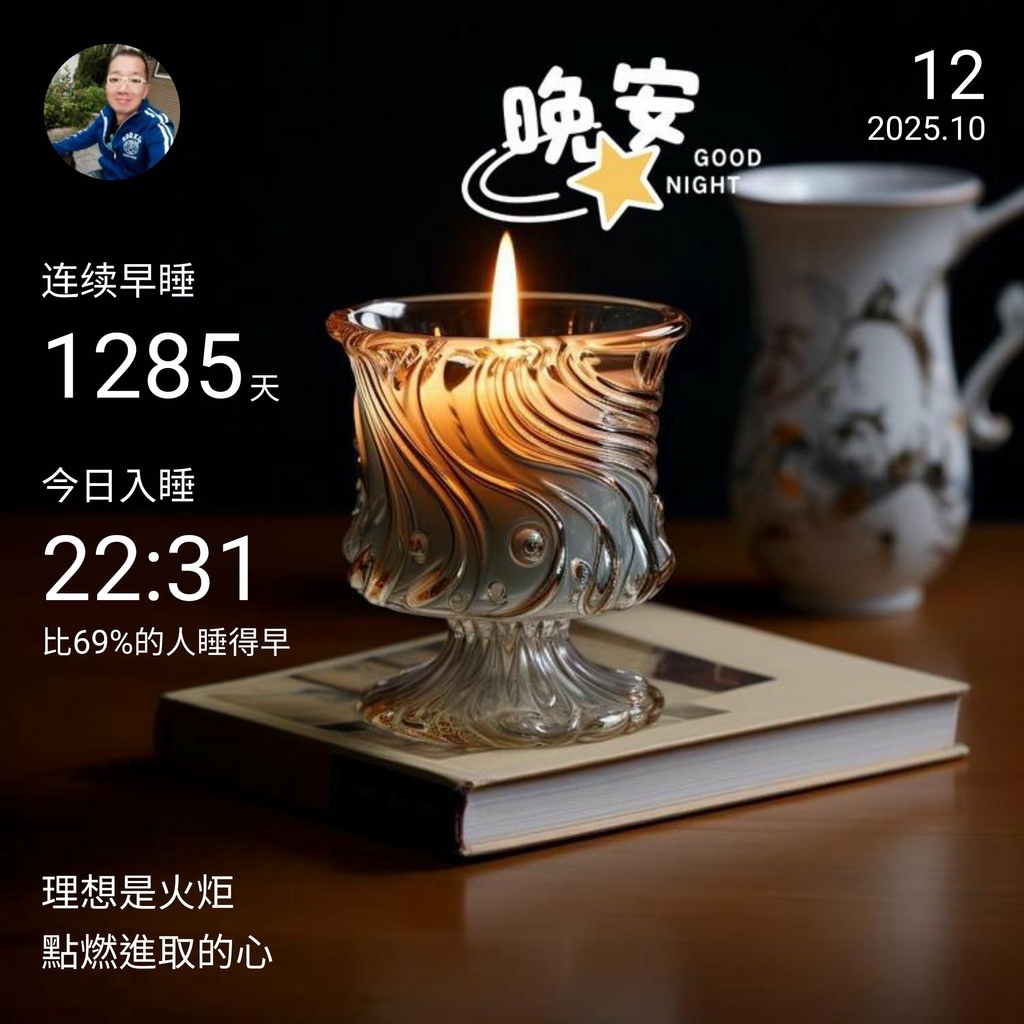 ⬆️晚安打卡圖,2025.10.12,理想是火炬,點燃進取的心