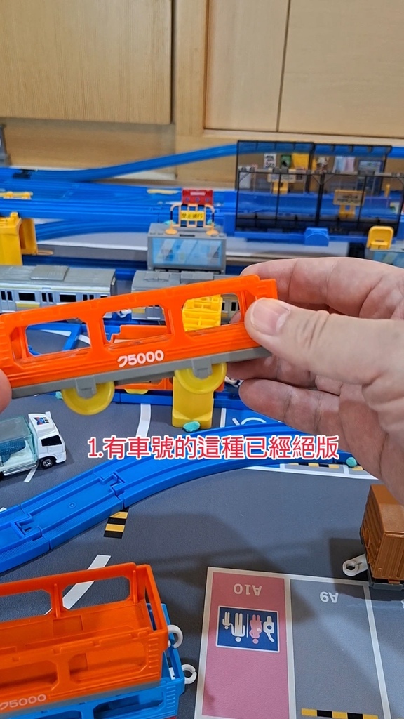 1.有車號的載運車: 橘色此款已絕版多年。藍色載運車: 此款為目前市售車。