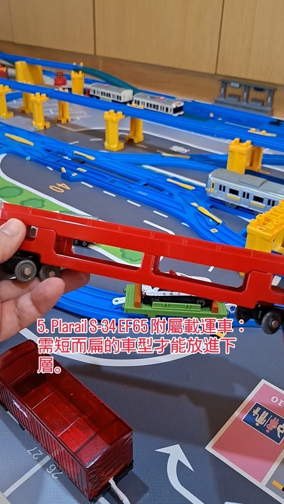 5.Plarail S-34 EF65 附屬載運車: 需短而扁的車型才能放進下層。