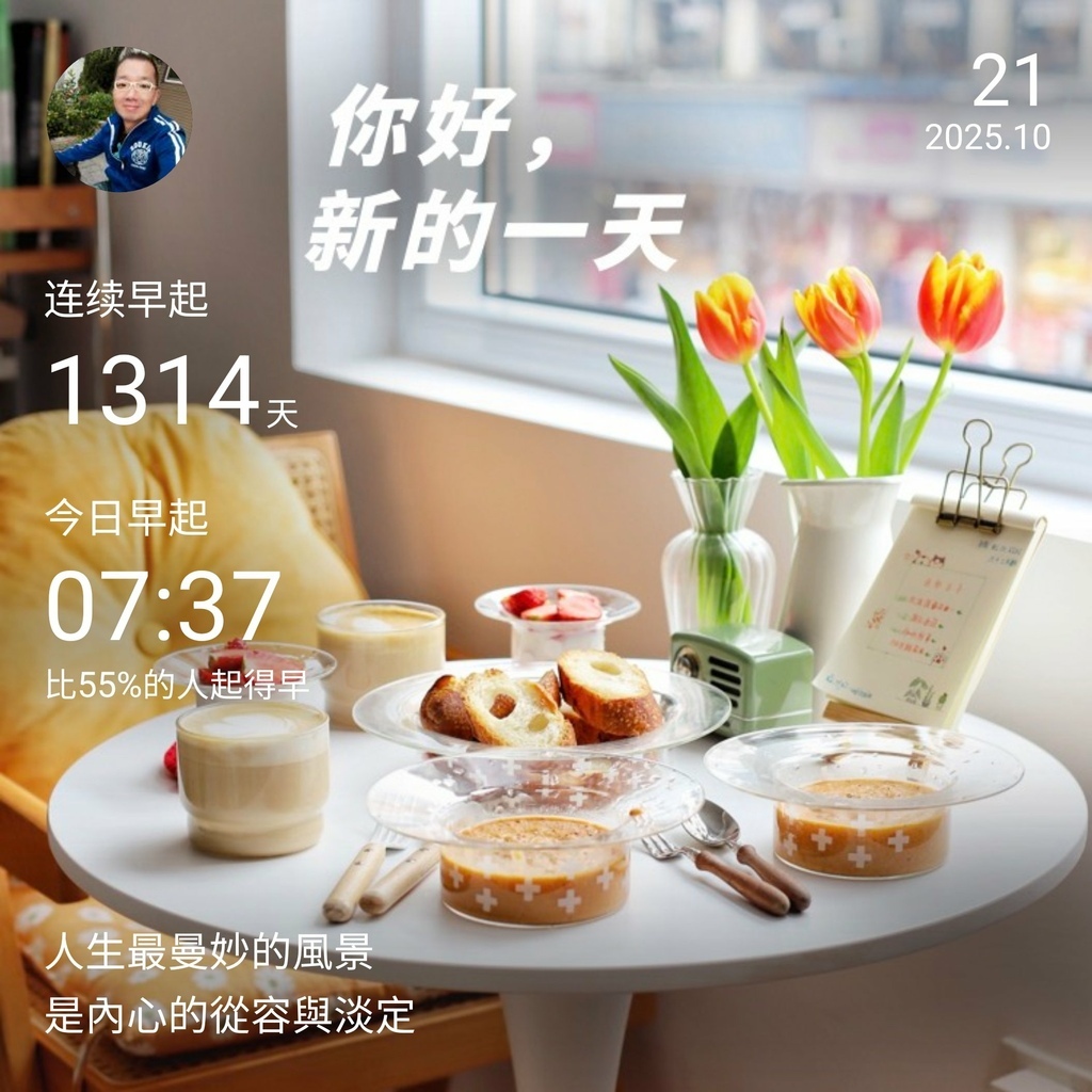 ⬆️早安打卡圖,2025.10.21,人生最曼妙的風景,是內心的從容與淡定