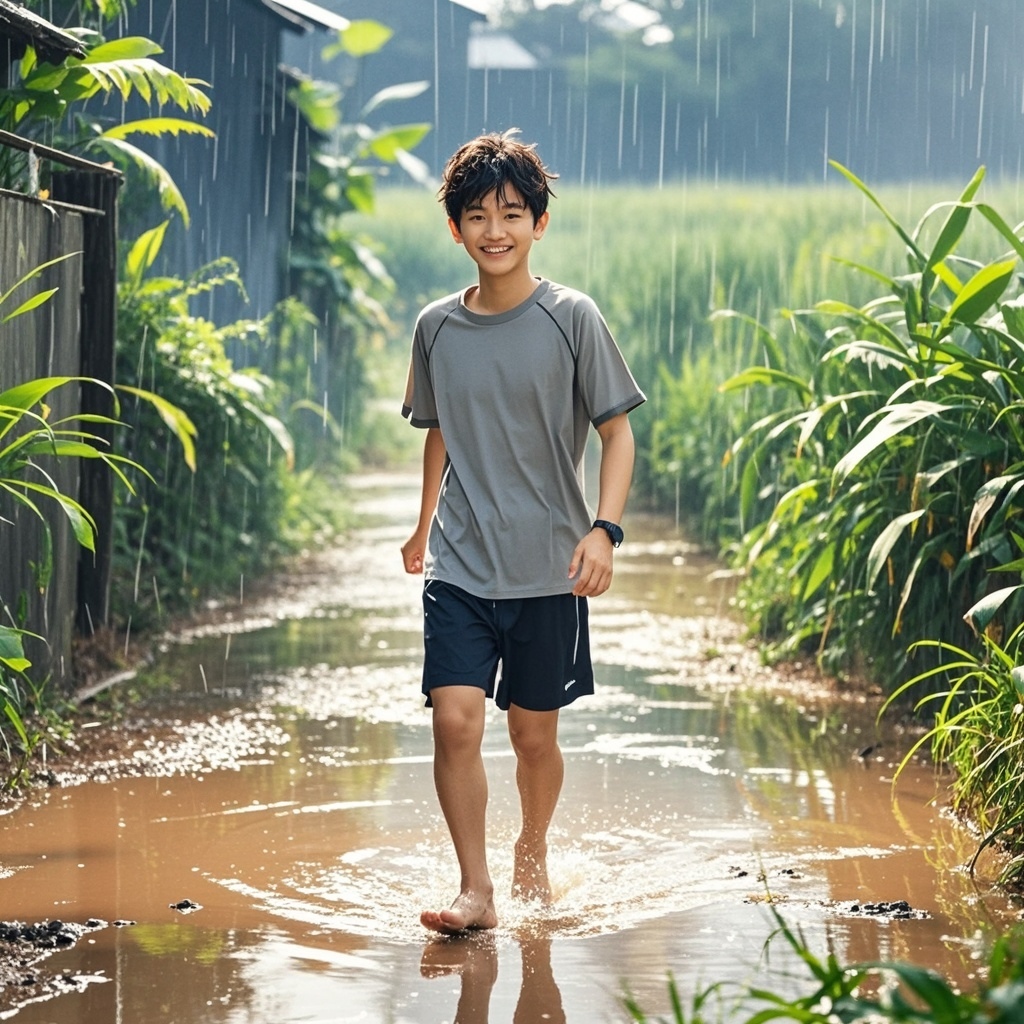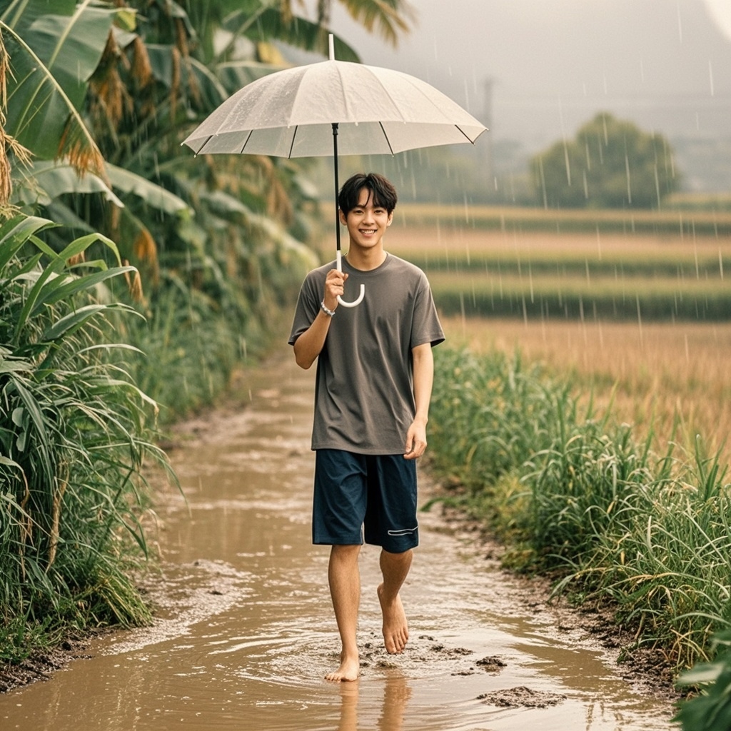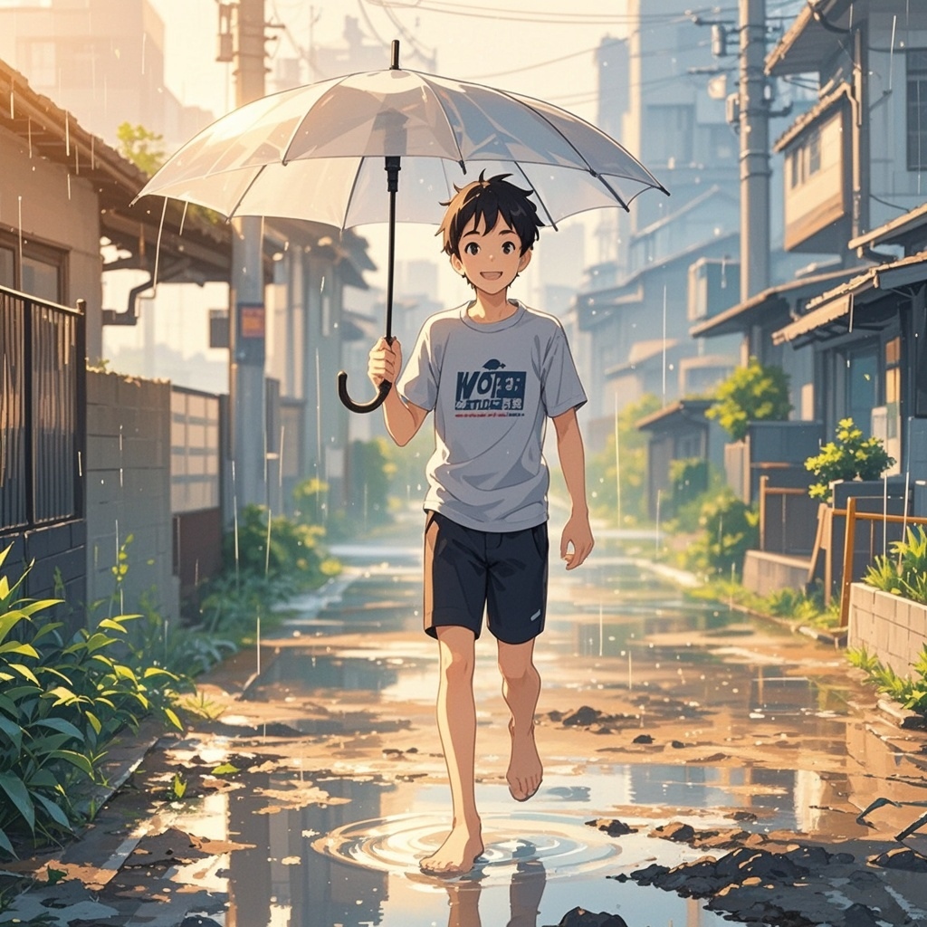 ⬆️赤腳男孩早安打卡圖,2025.10.21,早安,今天雨下好大