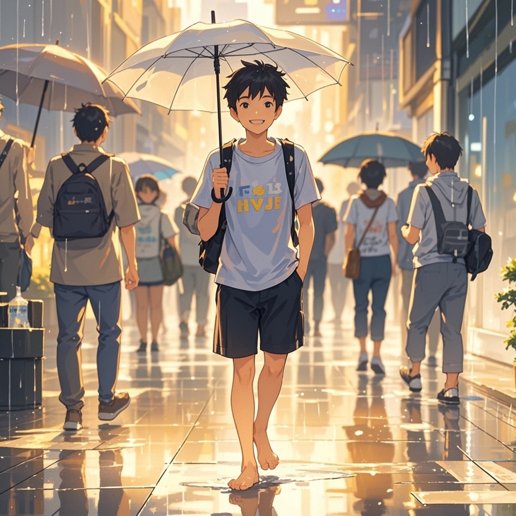 ⬆️赤腳男孩早安打卡圖,2025.10.21,早安,今天下雨天