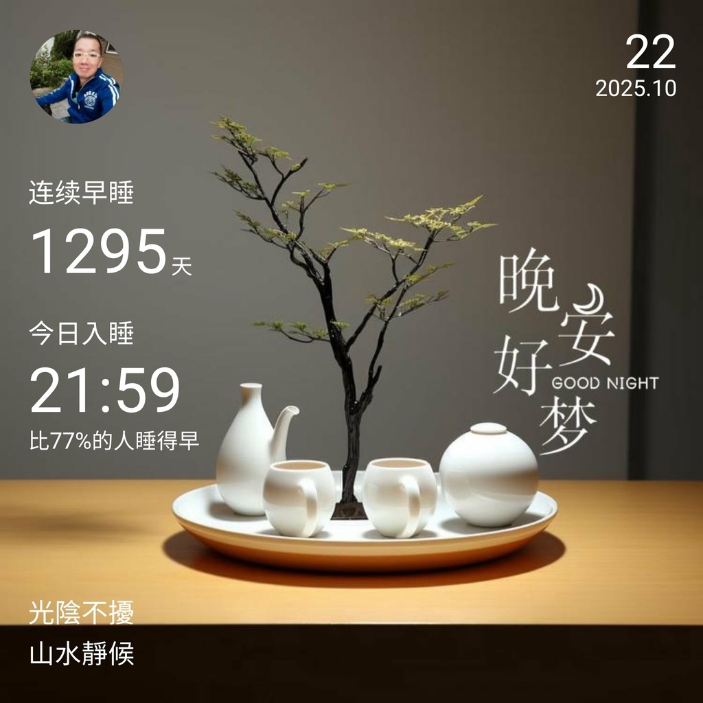⬆️晚安打卡圖,2025.10.22,光陰不擾,山水靜候