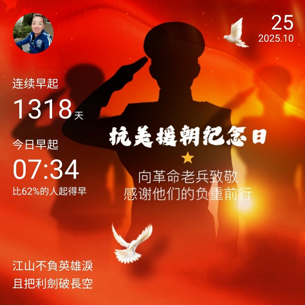 ⬆️早安打卡圖,2025.10.25,抗美援朝紀念日,江山不負英雄淚,且把利劍破長空
