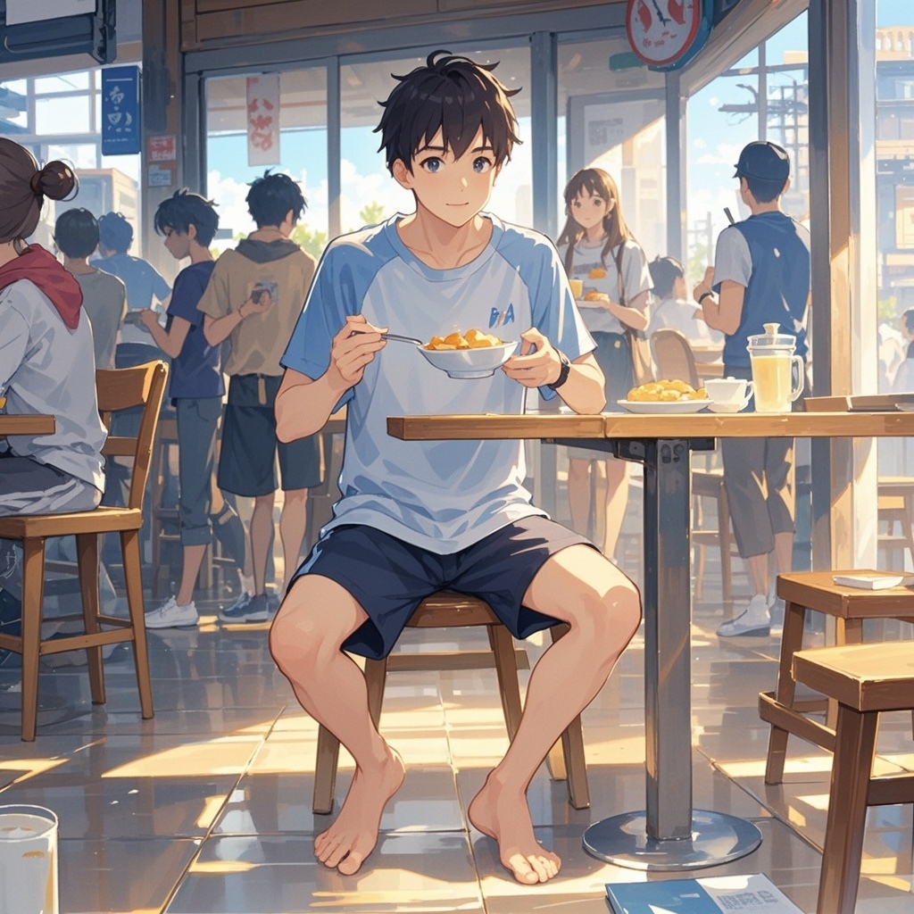 ⬆️赤腳男孩早安打卡圖,2025.10.25,早安,吃早餐身體好