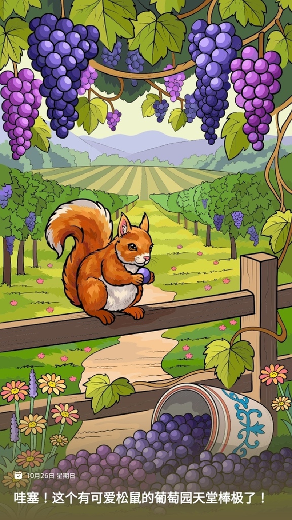 APP名稱: 數字填色 Paint by Number (by Oakever Games) 2025.10.26 哇塞!這個有可愛松鼠的葡萄園天堂棒極了!