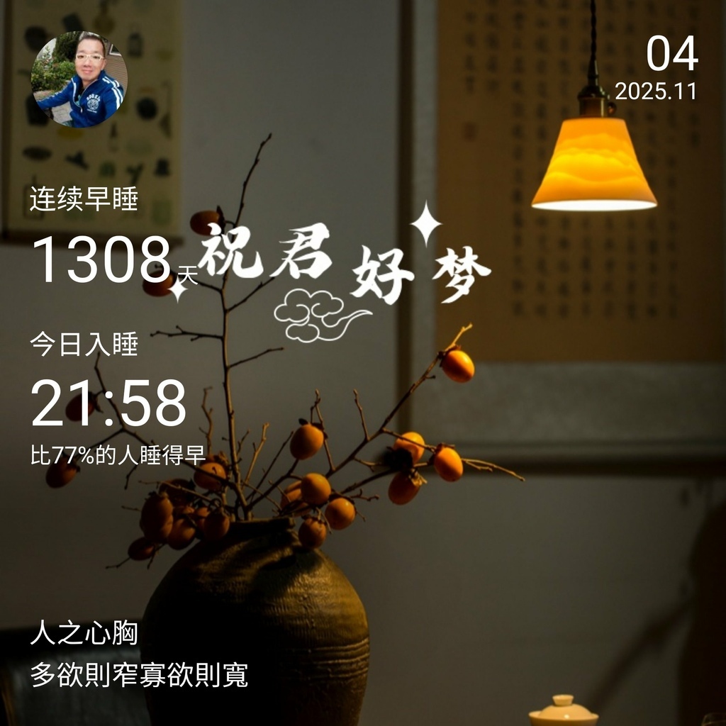 ⬆️晚安打卡圖,2025.11.04,人之心胸,多欲則窄,寡欲則寬